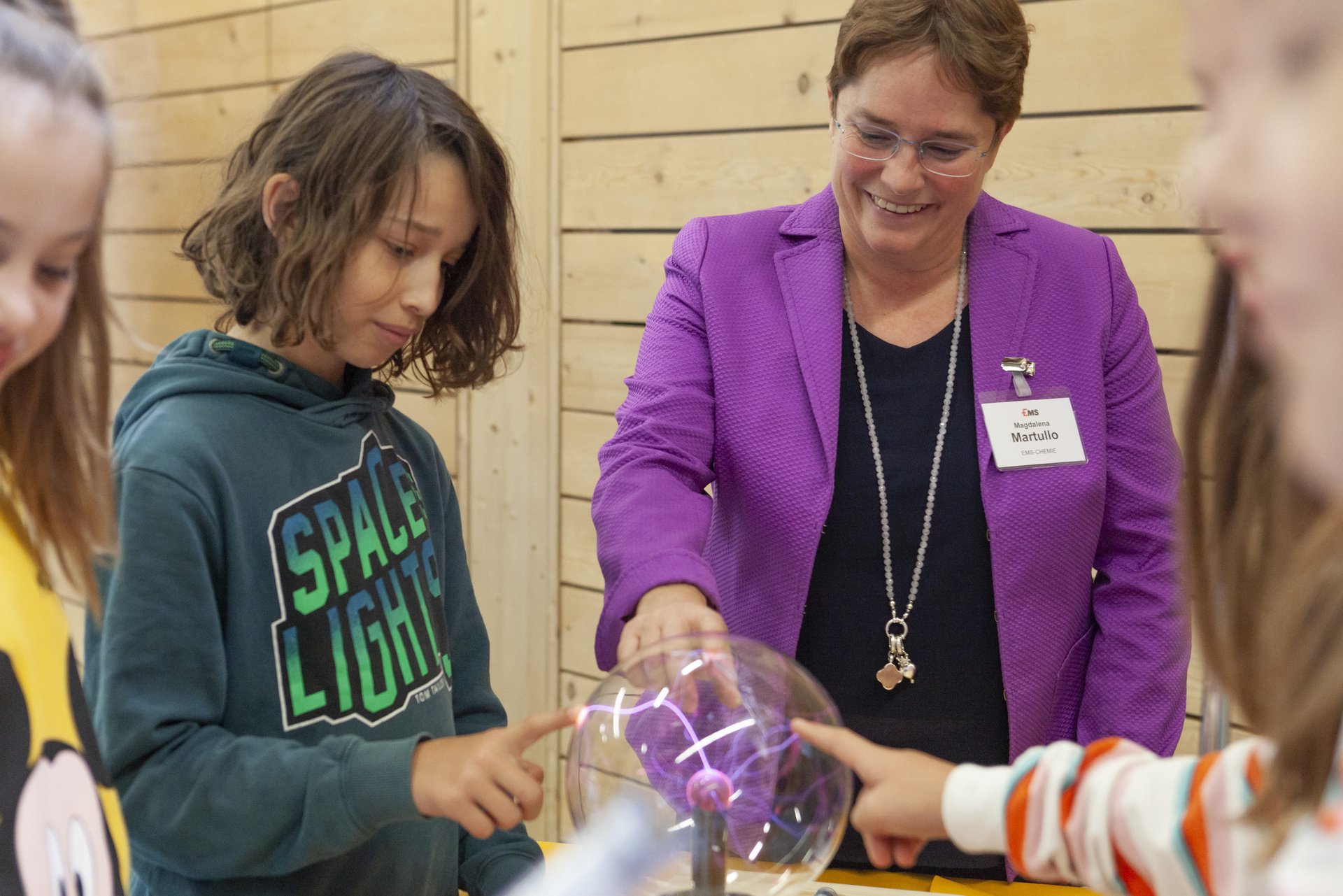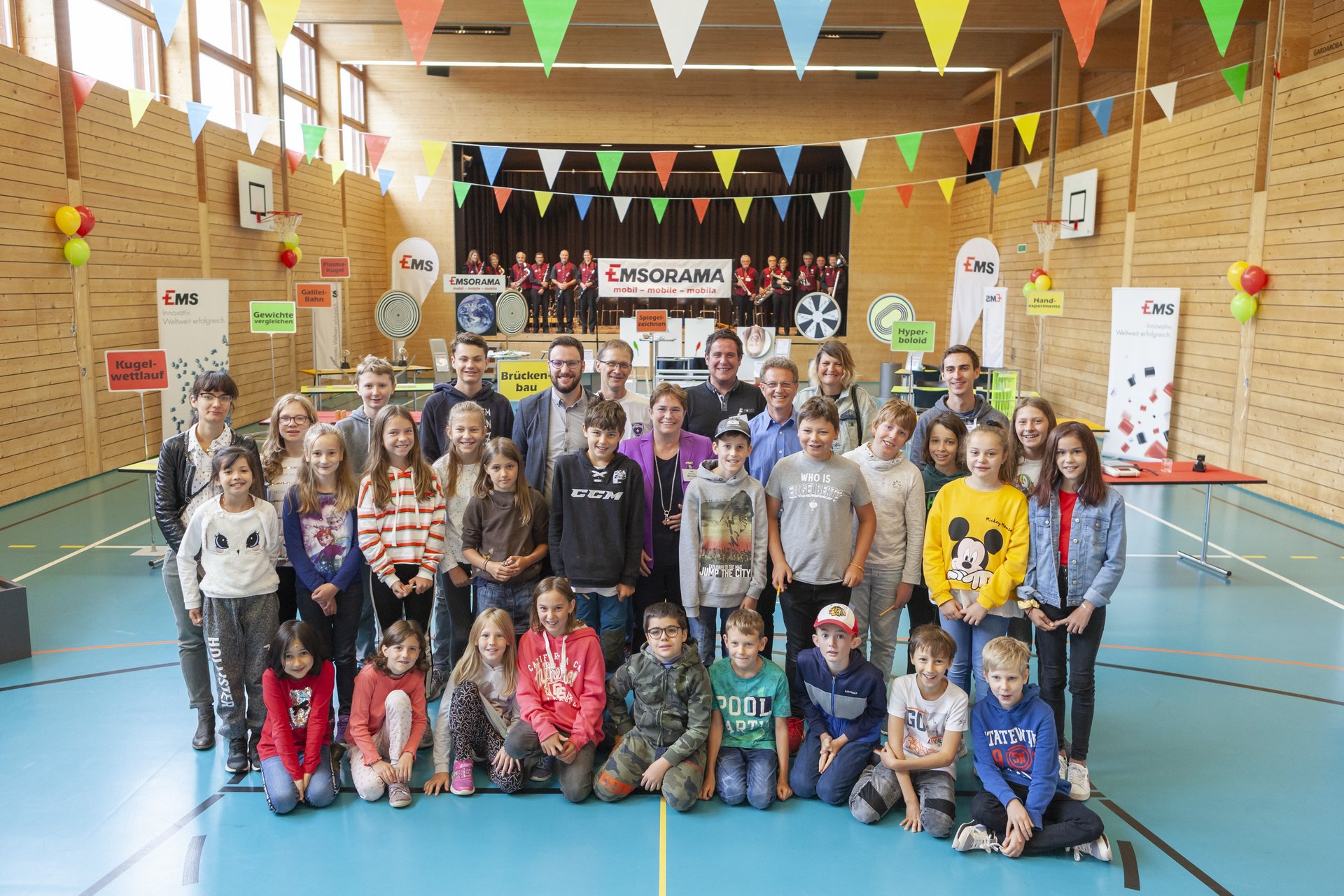 Im Beisein von Vertretern des Gemeindevorstands, des Gewerbes, der Schule und zweier Primarschulklassen von Bergün – musikalisch umrahmt durch die Musikgesellschaft Bergün – eröffnete die Chefin der EMS-CHEMIE, Magdalena Martullo, gemeinsam mit Gemeindepräsident Luzi C. Schutz und Schulratspräsident Reto Bachmann stolz das erste mobile Bündner Science Center EMSORAMA Mobil. Sie hätte schon länger die Idee gehabt, das EMSORAMA auch in die Dörfer und Täler zu bringen und Gross und Klein die faszinierenden Phänomene aus Natur und Technik erleben zu lassen.