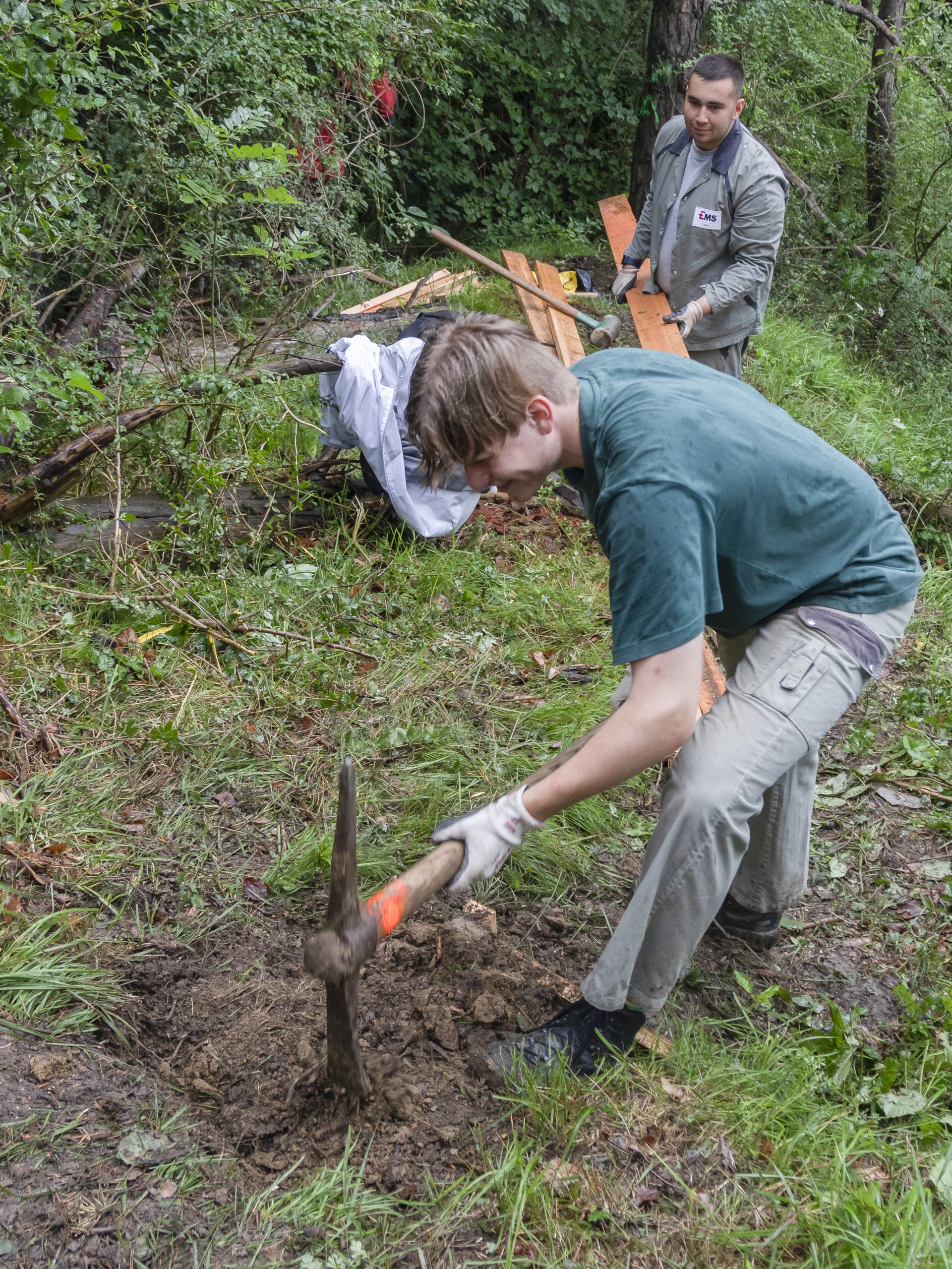 Für viele der EMS-Lernenden war es eine neue und abwechslungsreiche Erfahrung: «Einmal raus aus dem Alltag und eine Woche mit komplett anderen Arbeiten in der Natur verbringen, das gefällt mir sehr», erklärt Nicola Da Silva, Lernender Logistiker. «In der Spedition arbeiten wir mit Staplern und bereiten den Versand vor – hier dürfen wir mit Schaufel, Hacke und Pickel loslegen», ergänzt er.