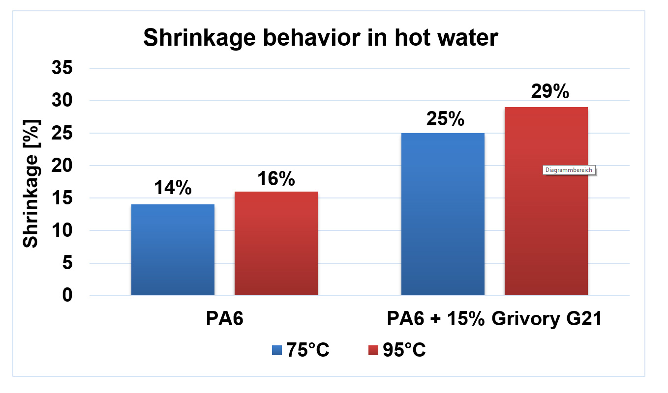 Durch den Einsatz von PA6 / Grivory G21-Blends kann die PA-Schicht in einem Folienverbund von 20 Mikrometer auf 15 Mikrometer reduziert werden, ohne die Barriere- und Thermoformeigenschaften zu beeinträchtigen. Dadurch lassen sich die Kosten, im Vergleich zu Folien mit CoPA 6/66, um bis zu 40% senken.
