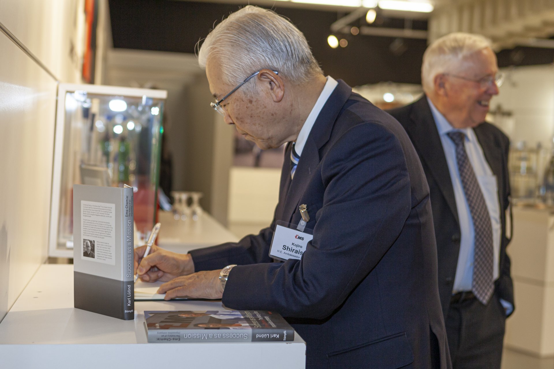 Kojiro SHIRAISHI, der Botschafter von Japan in der Schweiz, besuchte am Mittwoch, 29. Januar 2020, die EMS-CHEMIE in Domat/Ems. Nach einem Rundgang durch die Ausstellung über die 84-jährige EMS-Geschichte mit EMS-Chefin Magdalena Martullo-Blocher und Alt-Bundesrat und Ehrenpatron Dr. Christoph Blocher ging es weiter zum Mittagessen und einer Besichtigung auf Schloss Rhäzüns.