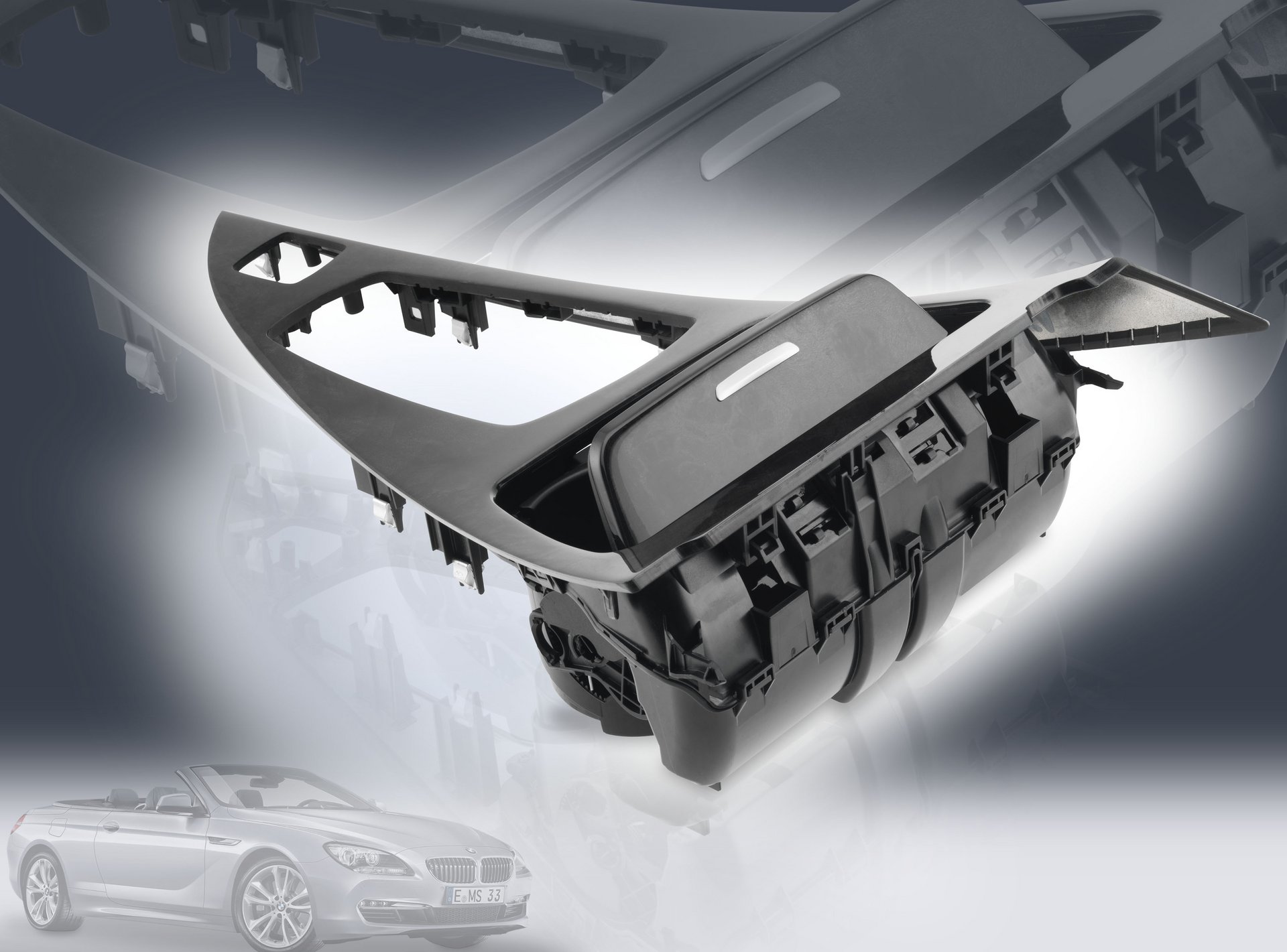 The main application areas for Grivory GVX are in metal replacement – housings for electronic items, in the automobile area and in industrial applications. The advantages of the EMS-GRIVORY material are impressively illustrated by two examples. The decorative trim of the BMW 6 Series convertible (F12) and coupé (F13) is made of 50% glass fibre-reinforced Grivory GVX. It combines impact strength with rigidity and is practically warp-free. It blends into the cockpit harmoniously and ensures an attractive design. The manufacture of the decorative trim using conventional glass fibre-reinforced materials would have been possible only with extreme tool technology adaptations. The distortion-critical geometry of the trim support became manageable only through the excellent shrinkage properties of Grivory GVX. Combined with its high dimensional stability and consistent behaviour under varying climatic conditions, this was the key to successful use in serial production.